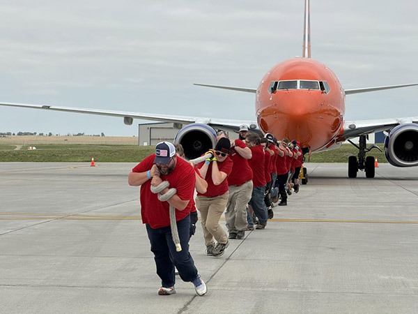 The day’s activities kicked off with the first-ever plane pull in Williston, where six spirited teams competed to pull a Sun Country Airlines Boeing 737 100 feet across the tarmac. Following the excitement, attendees gathered inside Overland Aviation for the fly-in movie, “Planes,” on a massive screen, and live entertainment, family activities and summer treats.